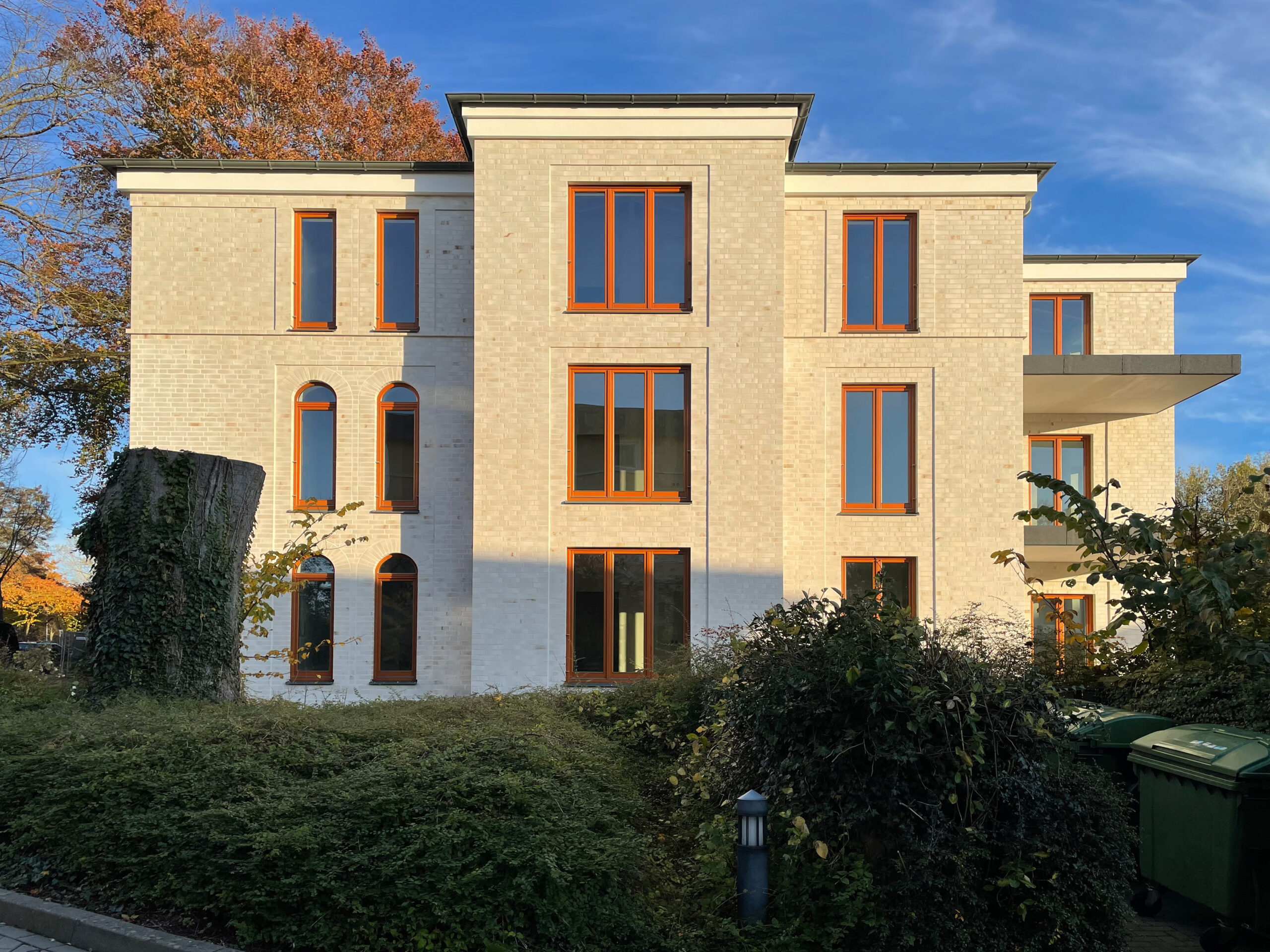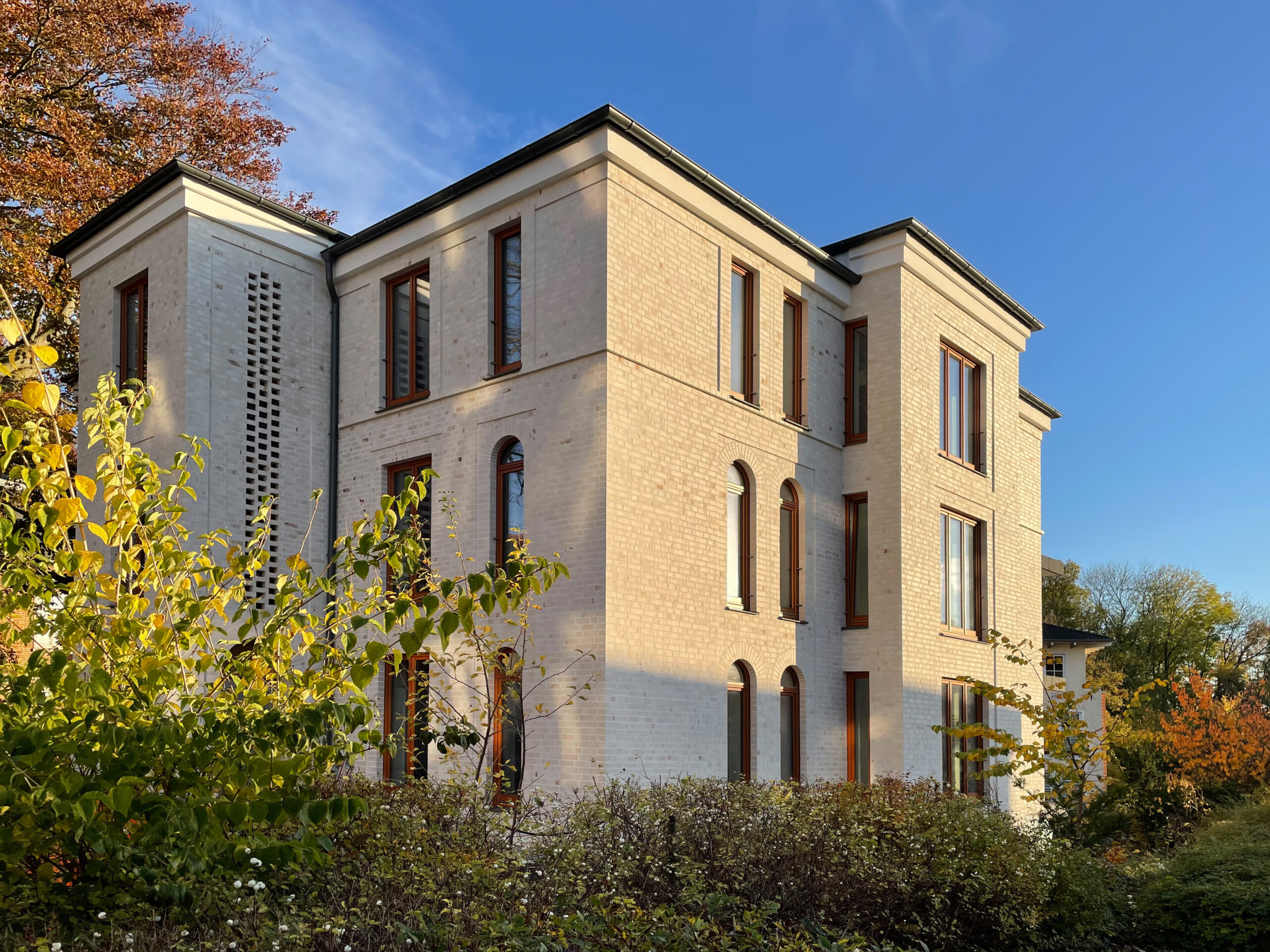 Die Kunstfertigkeit der Gewerke ist in der Villa in Wismar nun in voller Pracht zu bewundern: Die Rüstung ist gefallen, die Klinkerfassade strahlt in hellen Sandtönen!